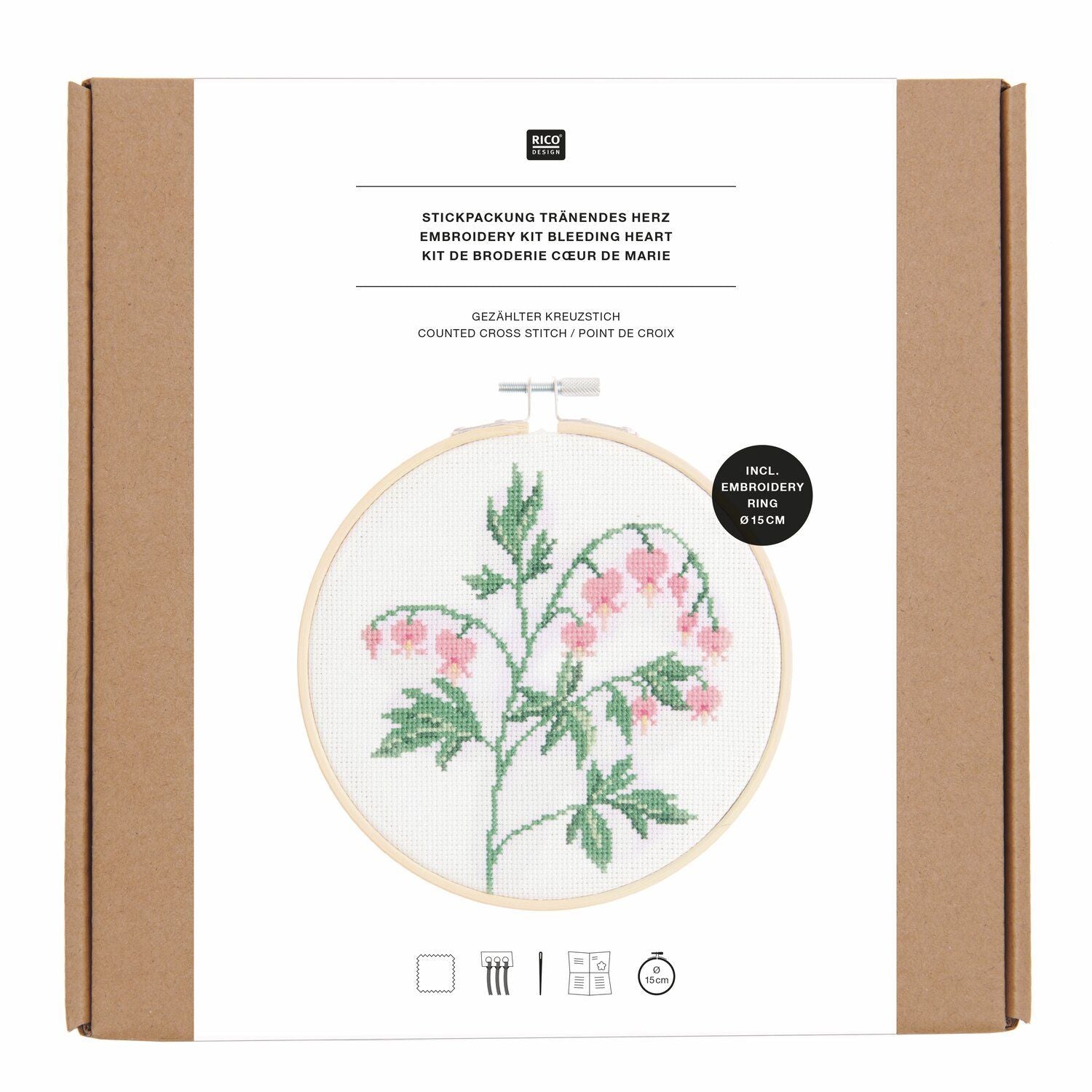 Het borduurpakket 'Gezähltes Kreuzstich Tränendes Herz' uit de serie 'The sky is the limit' bevat alle materialen voor een gedetailleerd borduurmotief met een diameter van 15 cm. De bijgeleverde Aidastof van katoen met 64 steken per 10 cm (16 count) heeft een fijnere structuur en vormt daarmee een nauwkeurige basis voor het kruissteekwerk, dat stevig wordt vastgezet in de bijpassende bamboe borduurring. De set wordt aangevuld met hoogwaardig borduurgaren van katoen, extra neon borduurgaren van polyester voor heldere accenten, een borduurnaald en een uitgebreide handleiding die u stap voor stap door het hele project leidt.