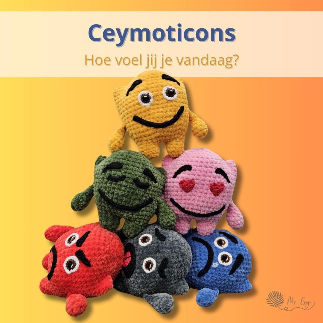 Een vrolijke verzameling van zes unieke figuurtjes die elk een herkenbare emotie uitbeelden. Perfect om te haken als cadeau, decoratie of als speels hulpmiddel bij het praten over gevoelens.