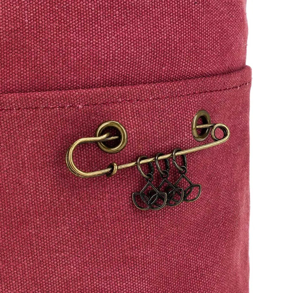 De veelzijdige Nora Big Bucket van Della Q is een projecttas en yarn bowl in één. De tas is gemaakt van stevige canvas stof en is gevoerd met een gladde stof met Della Q-print. De Nora Big Bucket is groot genoeg voor het opbergen van je haak- of breiproject en persoonlijke spullen. Het hengsel heeft aan de bovenkant drukknopen. Wanneer de knopen gesloten zijn, kun je de tas om je pols dragen, als een handige projecttas voor onderweg. Haal je de knopen los, dan kun je de tas neerzetten en gebruiken als een handige yarn bowl. Aan de buitenkant van de Nora Big Bucket zitten twee steekvakken, waarvan één met een antiek ogende veiligheidsspeld met daaraan enkele lotusvormige stekenmarkeerders. Aan de binnenkant zitten meerdere steekvakken en een ritsvak. De tas is 53 x 40 x 12cm groot en verkrijgbaar in verschillende kleuren.