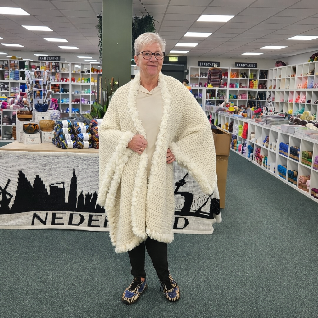 De Get Back On Your SHETLAND Horse Shawl is de deluxe versie van die uit 2021. Deze prachtige omslagdoek/sjaal heeft een Panda bontrandje dat maakt hem net even wat specialer. Haak deze prachtige en zeer royale omslagdoek met haaknaald 7 of 8 en 15. Het haakpatroon is direct na het afrekenen te downloaden. Het patroon bestaat voornamelijk uit stokjes en vasten.
