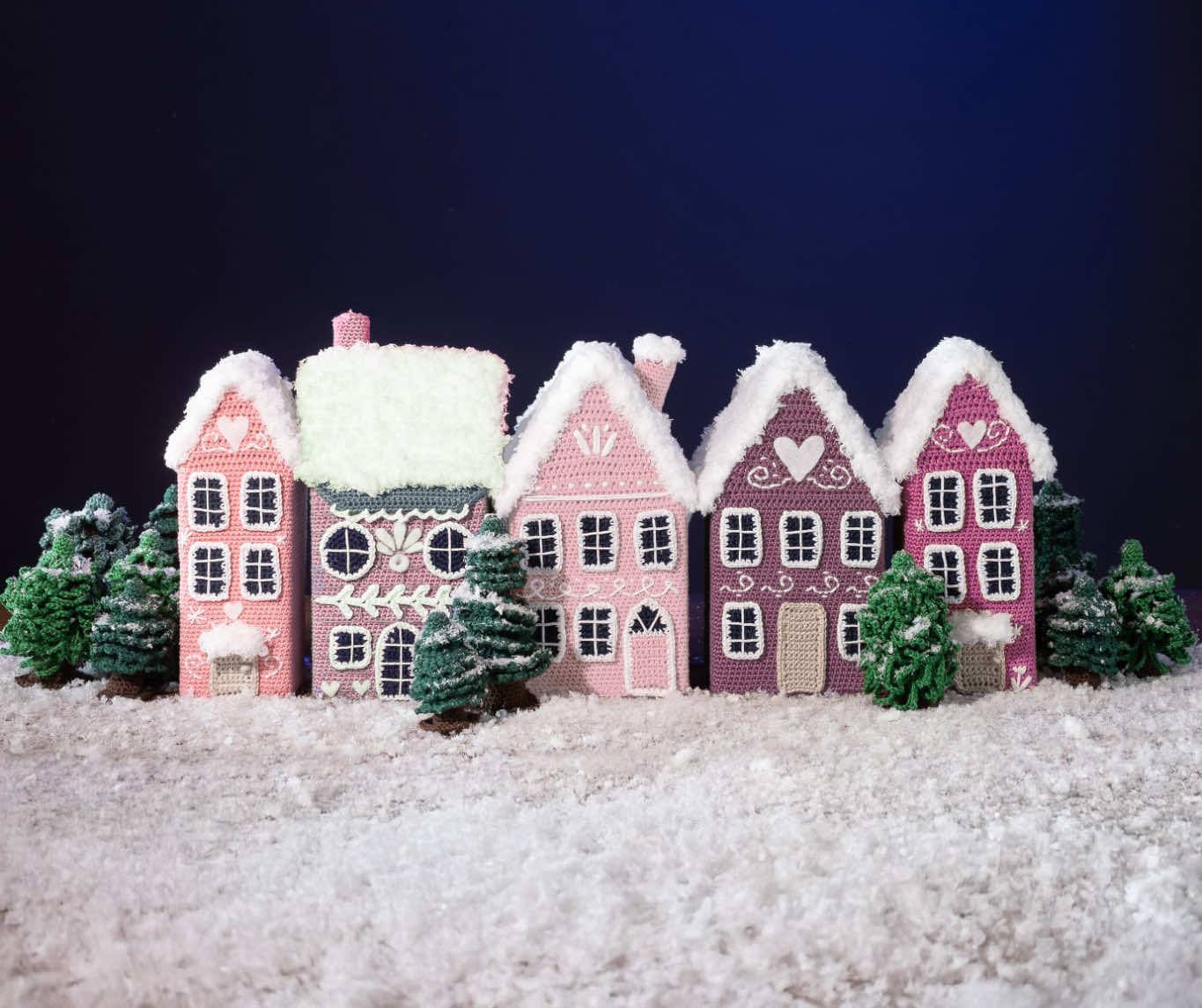 Grote huisjes uit Kersthuisjes haken ROZE (Garenpakket)