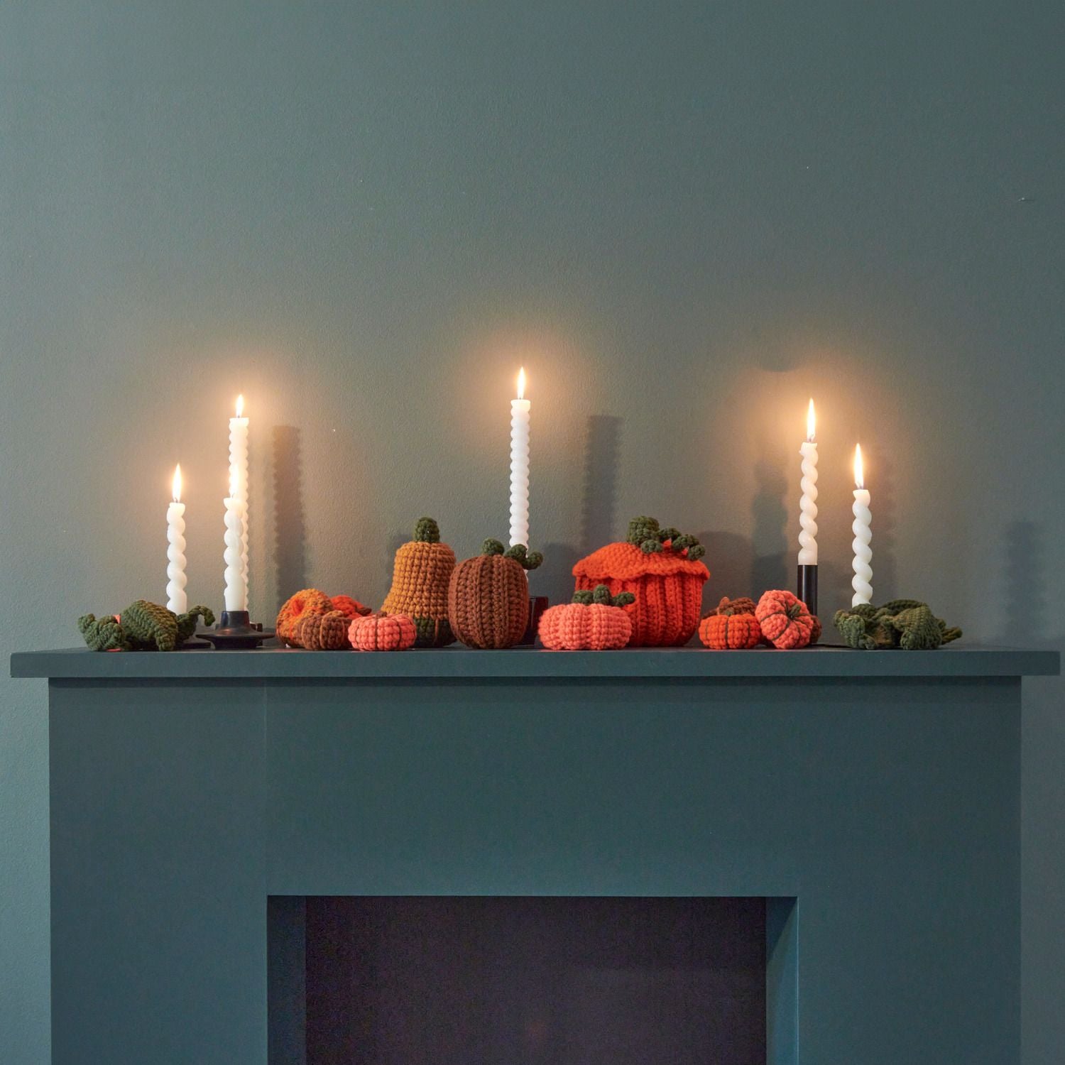 Pompoenvormen en talrijke bladeren zorgen voor diversiteit in de herfstsfeer. Op je haaknaald, klaar, af!