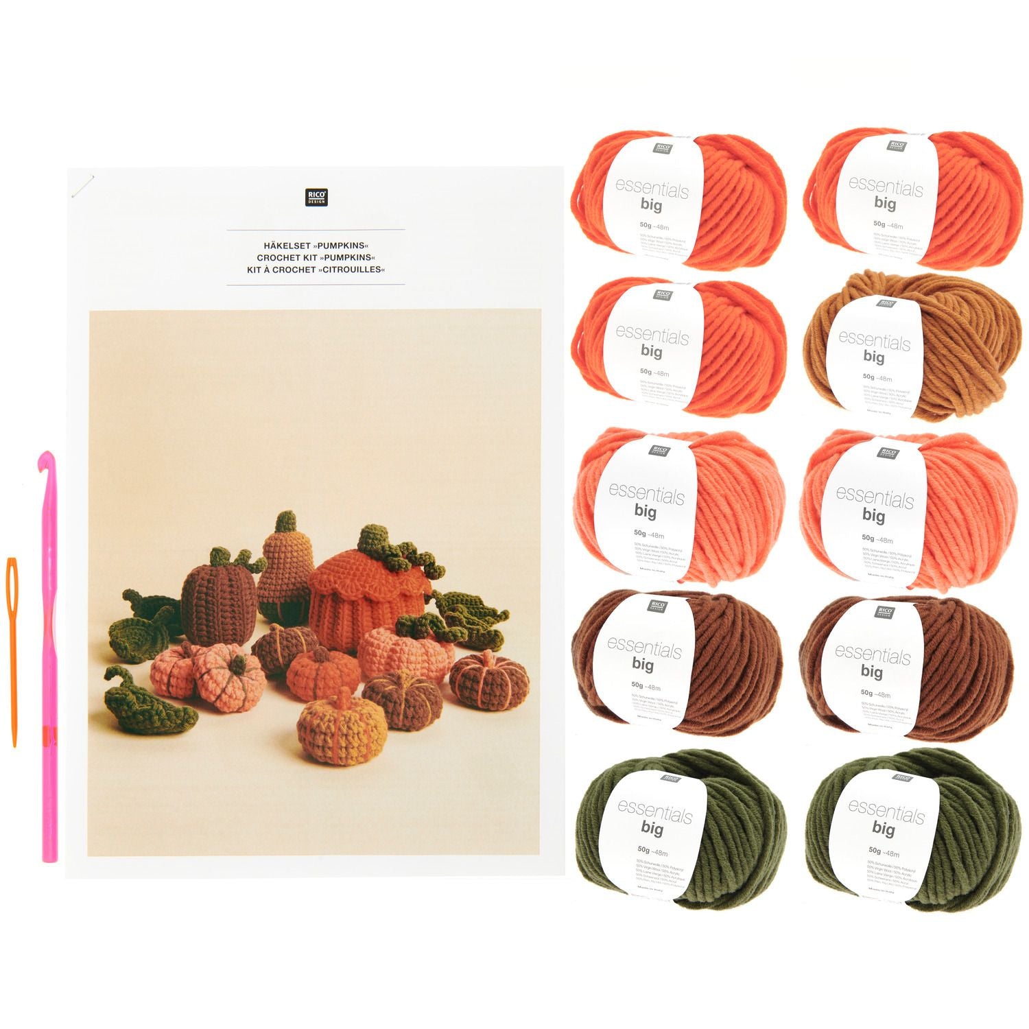 Met deze haakset kun je geweldige pompoenen haken voor een sfeervolle herfstdecoratie. De limited edition doos bevat de garens in harmonieuze herfstkleuren en de naalden en instructies die nodig zijn om de verschillende pompoenen te maken. Het meegeleverde garen is voldoende voor alle getoonde modellen: grote pompoenen, kleine pompoenen, verschillende pompoenvormen en talrijke