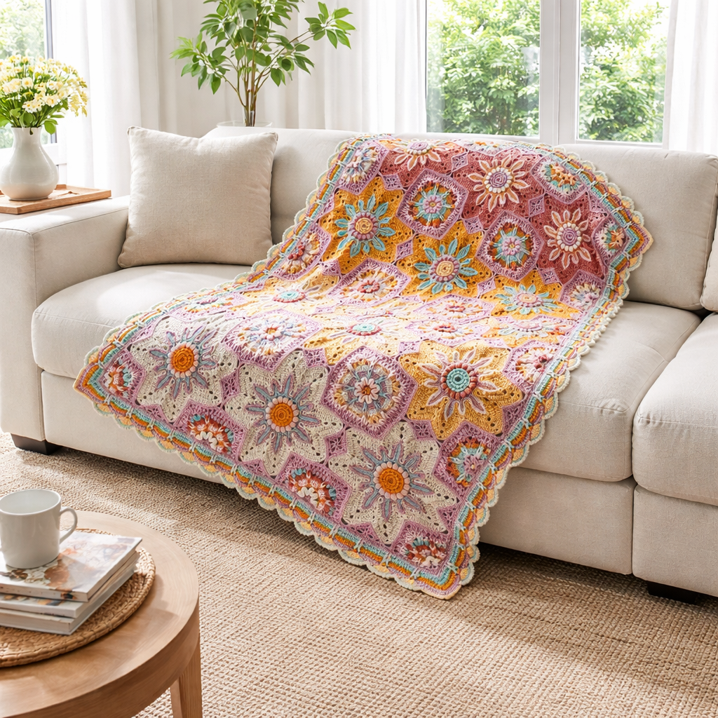 Laat je meevoeren in een prachtig bloemenveld met de nieuwe Katia CAL “Stars in Bloom”. Deze crochet-a-long neemt je stap voor stap mee in het maken van een sfeervolle en kleurrijke deken, opgebouwd uit bloemachtige motieven die samen een harmonieus geheel vormen.