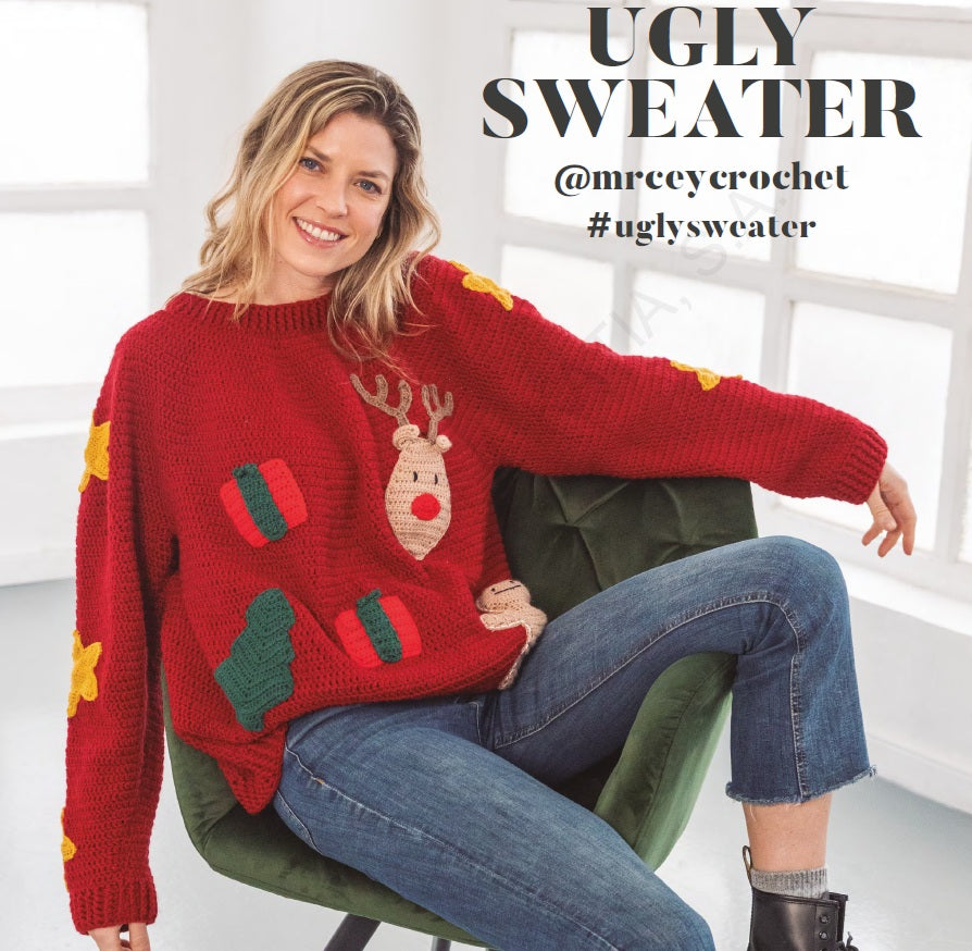 De Katia Ugly Sweater, ontworpen door Mr. Cey Crochet, is dé ultieme kersttrui voor iedereen die houdt van creatief haken met een knipoog. Dit unieke haakpatroon combineert klassieke kerstkleuren met een speels en ‘ugly’ design, helemaal in lijn met de populaire foute kerstsweater-trend!