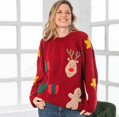 Gehaakt met het zachte Basic merino van Katia, wordt deze sweater niet alleen een blikvanger, maar ook een comfortabel en warm kledingstuk waar je met trots in rondloopt. Perfect voor kerstdiners, ugly sweater parties, of als origineel handgemaakt cadeau.