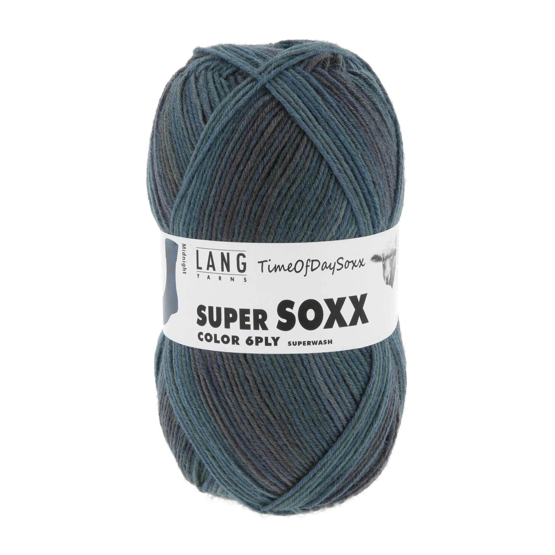Lang Yarns Super Soxx Color 6 Ply Time of the day soxx, een variatie op de bekende sokkenwol van Lang Yarns, maar nu naast de 4-draads ook een 6-draads sokkenwol voor lekker dikke sokken. Prachtige kwaliteit garen in mooie doorloopkleuren die vanzelf een patroon in de sok aanbrengen.