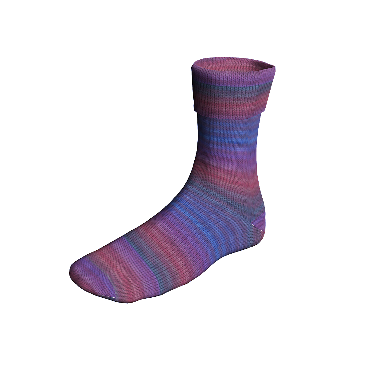 Lang Yarns Super Soxx Color 6 Ply Time of the day soxx, een variatie op de bekende sokkenwol van Lang Yarns, maar nu naast de 4-draads ook een 6-draads sokkenwol voor lekker dikke sokken. Prachtige kwaliteit garen in mooie doorloopkleuren die vanzelf een patroon in de sok aanbrengen.