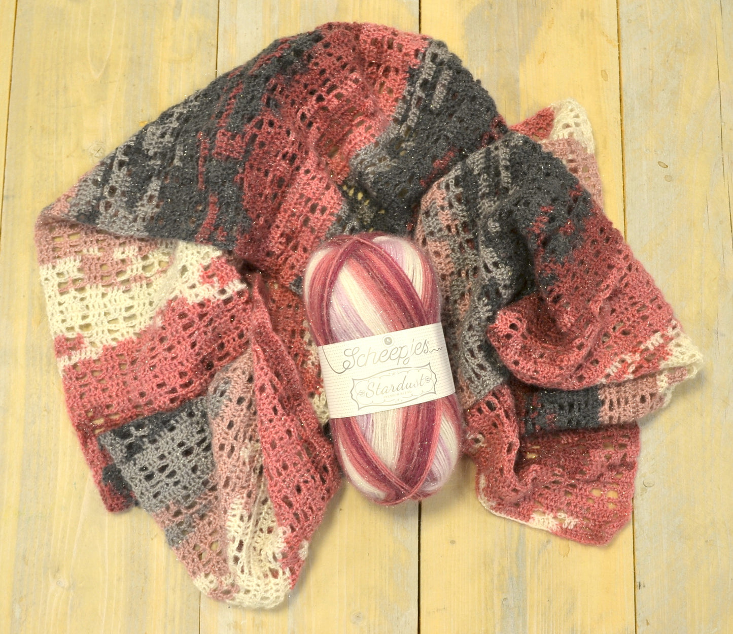 Sparkling Starz is het nieuwe ontwerp van Mr. Cey. Een prachtige rechthoekige sjaal gemaakt met 2 bollen Scheepjes Stardust of 2 bollen Papatya Angora Batik.
