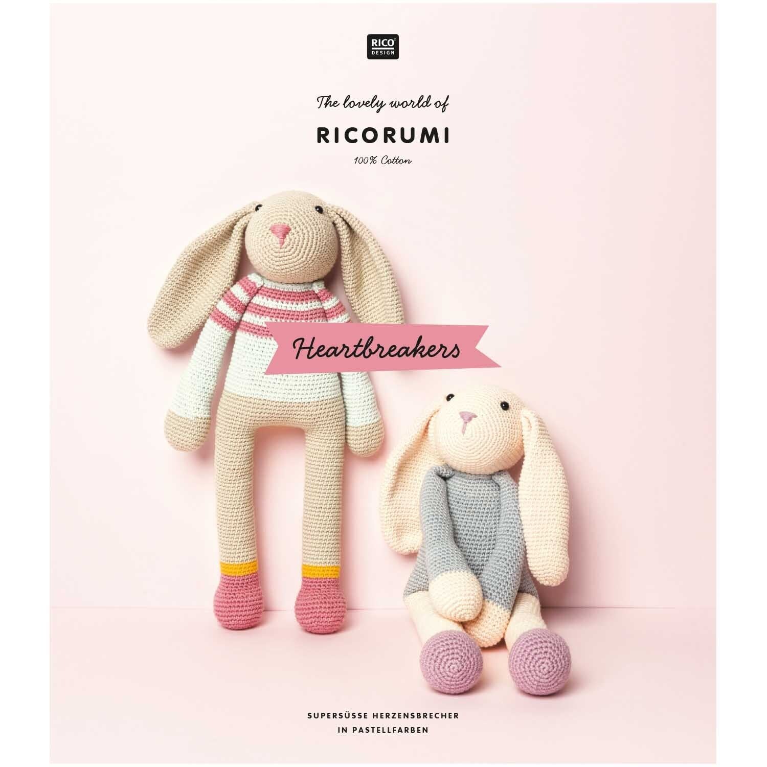 De Rico Design publicatie "Ricorumi Heartbreakers" laat leuke paasdecoraties zien, gehaakt van de populaire katoengarenkwaliteit Ricorumi dk. Deze kleine accessoires zijn altijd een blikvanger als decoratie in huis of als cadeau voor dierbaren.