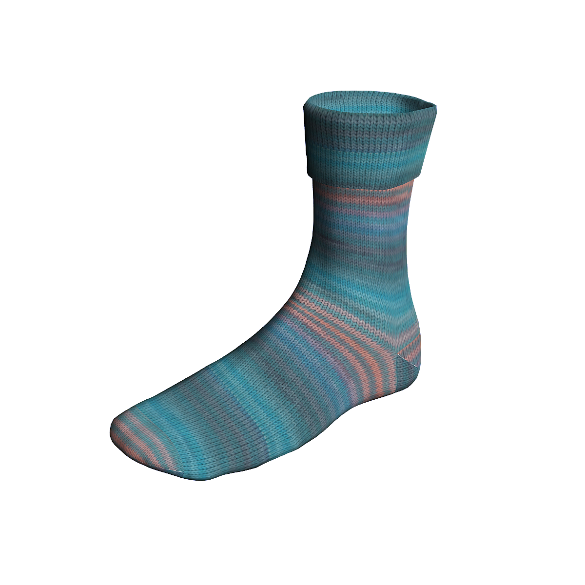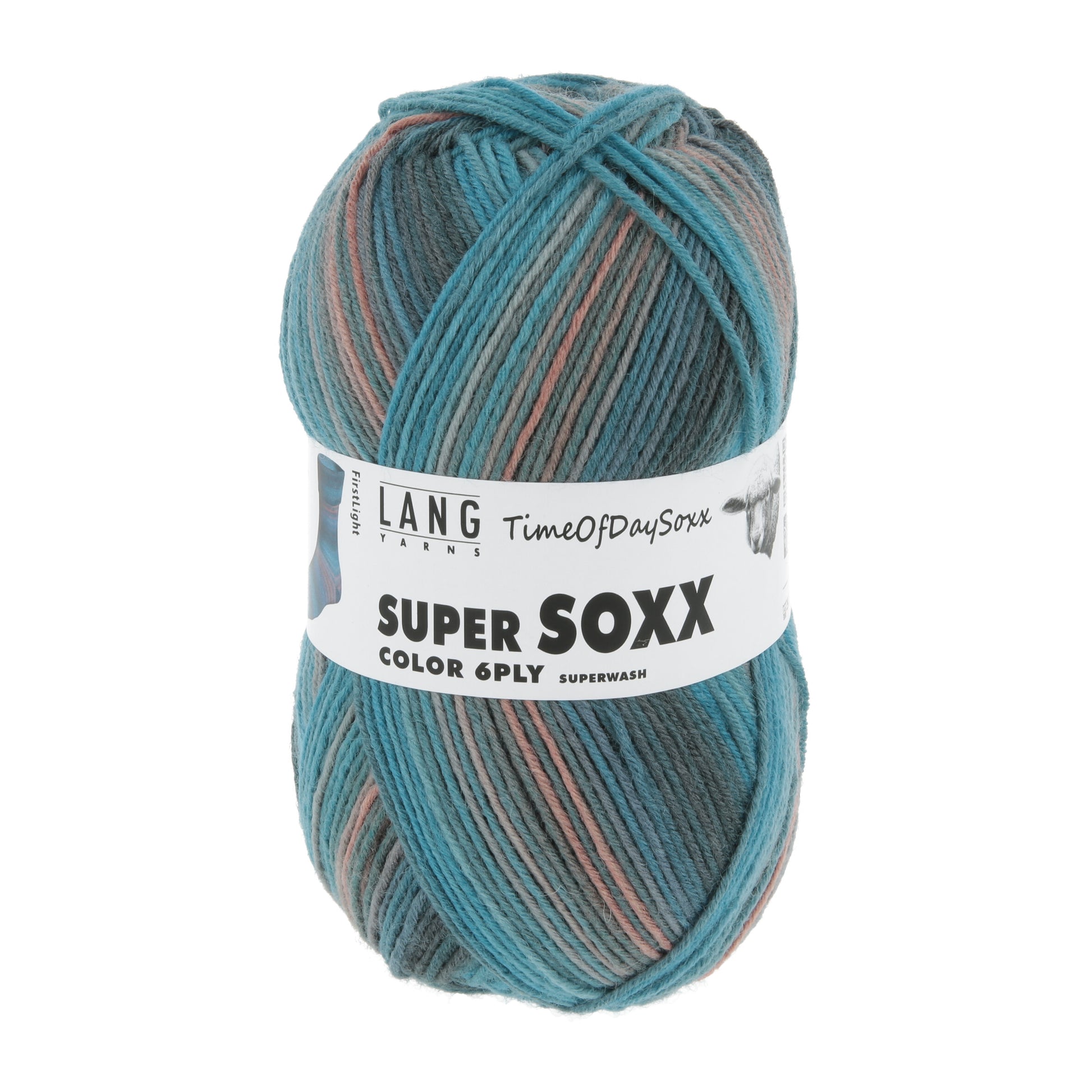 Lang Yarns Super Soxx Color 6 Ply Time of the day soxx, een variatie op de bekende sokkenwol van Lang Yarns, maar nu naast de 4-draads ook een 6-draads sokkenwol voor lekker dikke sokken. Prachtige kwaliteit garen in mooie doorloopkleuren die vanzelf een patroon in de sok aanbrengen.